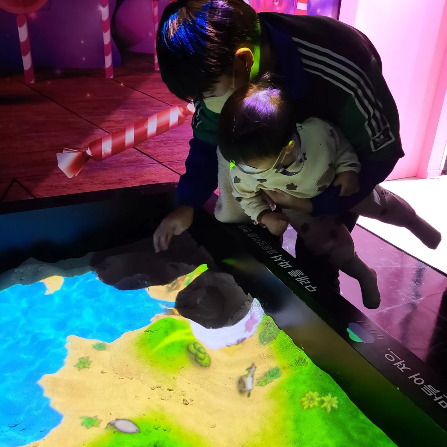 우야는 아직 키가 작아, 아빠가 들어서 체험시켜줘야 했어요